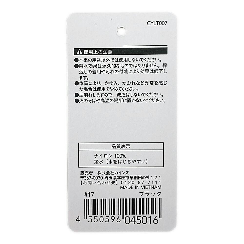 品質表示/ナイロン100%、撥水(水をはじきやすい)