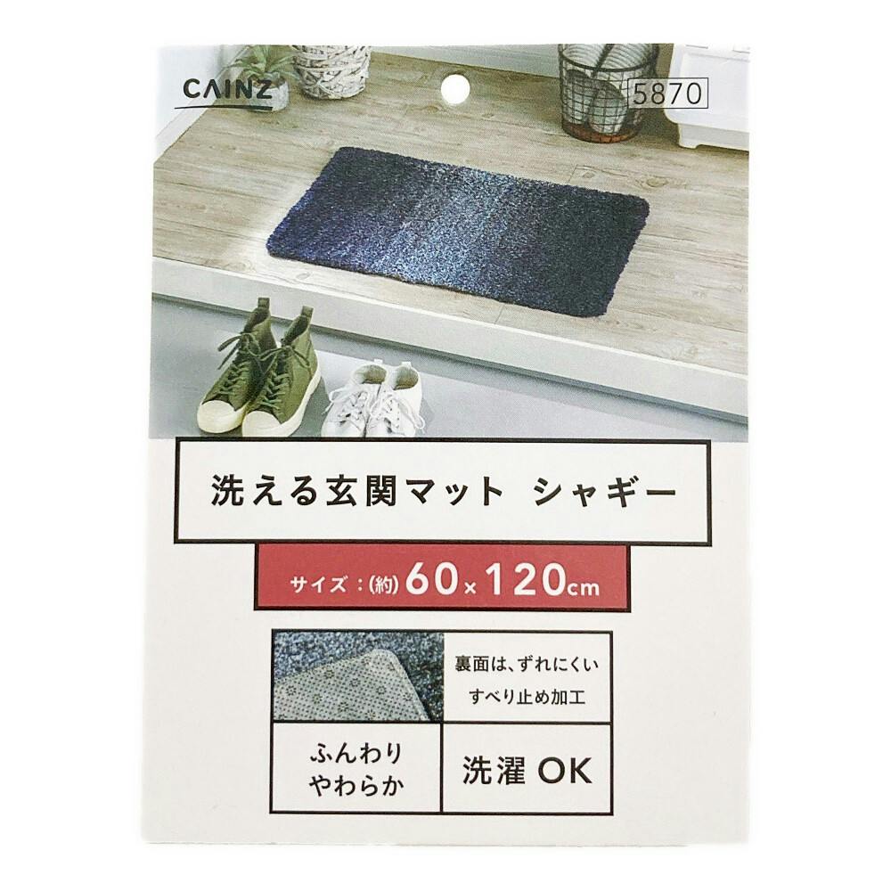 洗える玄関マット シャギー ネイビー 60×120cm