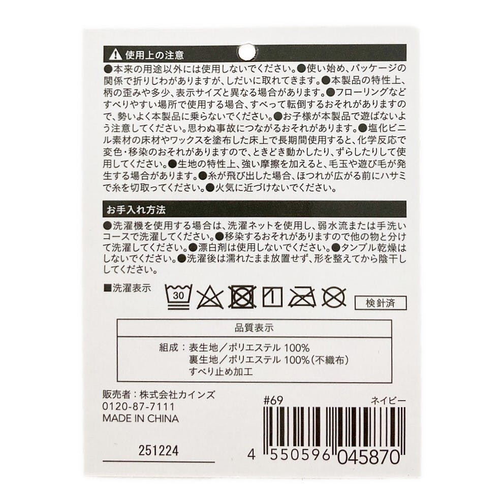 表生地/ポリエステル100% 裏生地/ポリエステル100%(不織布) すべり止め加工