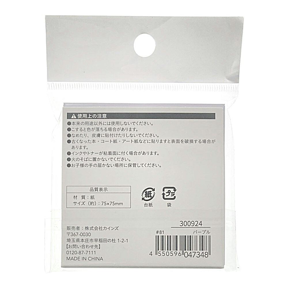 カインズ 強粘着ふせん 75×75mm 90枚 パープル