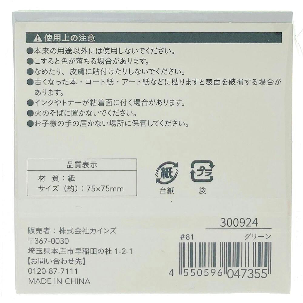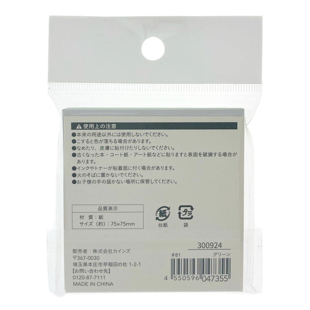 カインズ 強粘着ふせん 75×75mm 90枚 グリーン