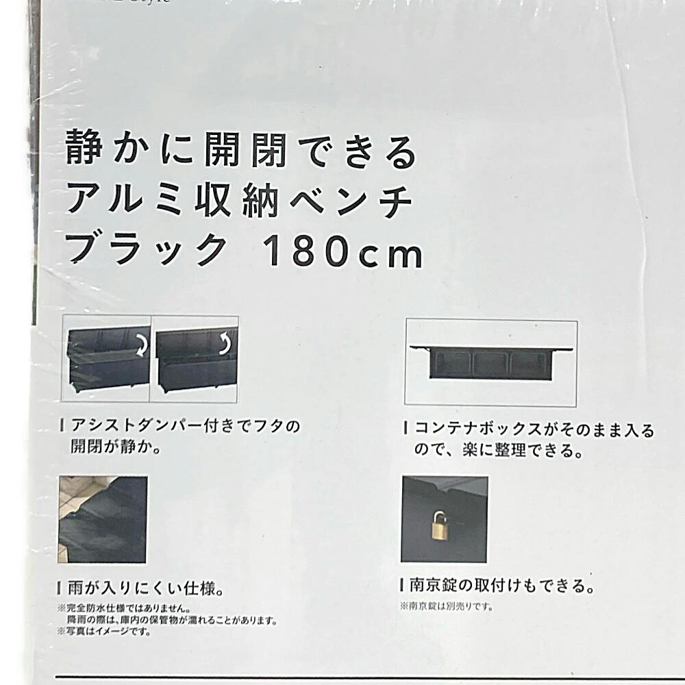 カインズ 静かに開閉できるアルミ収納ベンチ ブラック 幅180cm 奥行45cm 高さ48cm 縁台 屋外収納