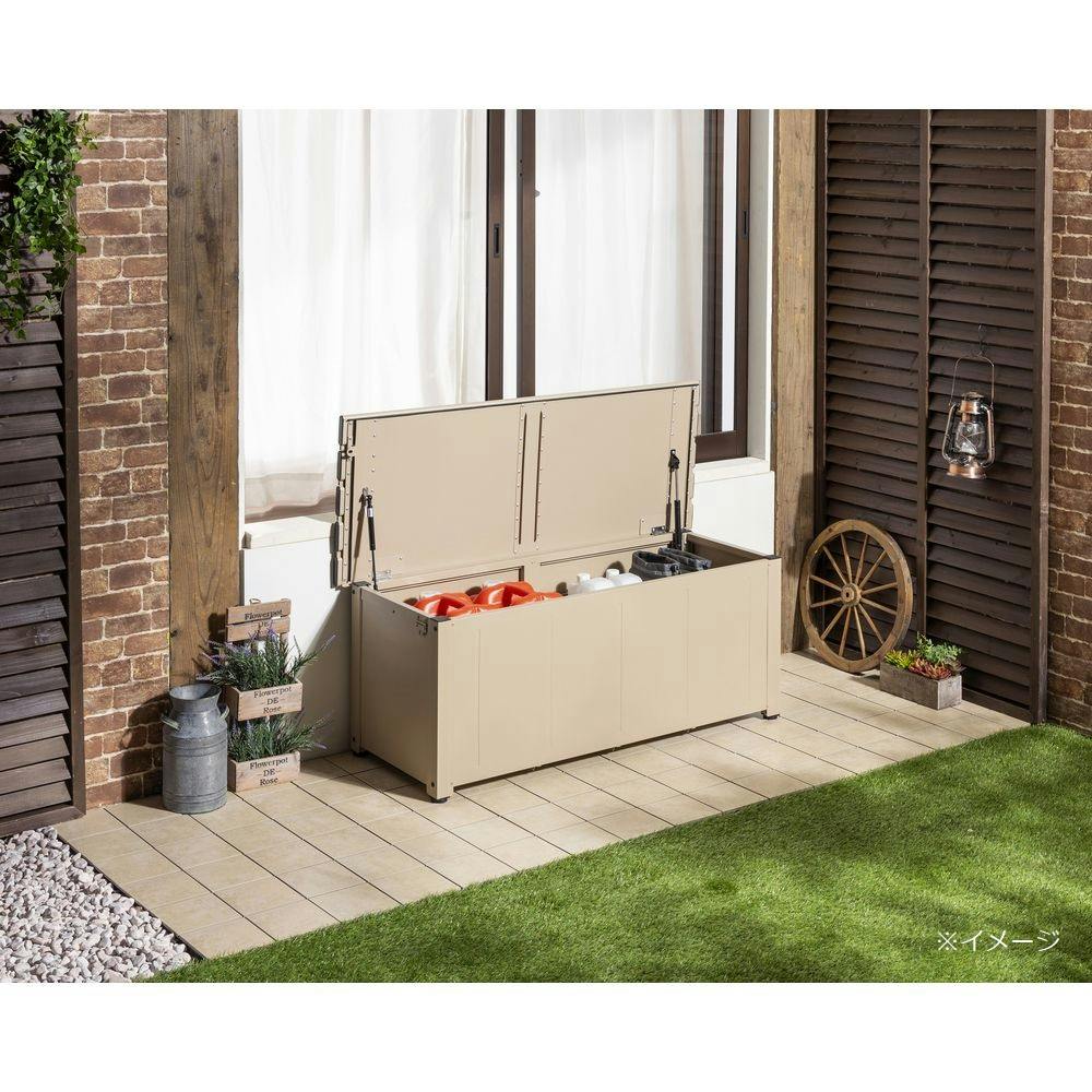 カインズ 静かに開閉できるアルミ収納ベンチ ベージュ 幅120cm 奥行45cm 高さ48cm 縁台 屋外収納