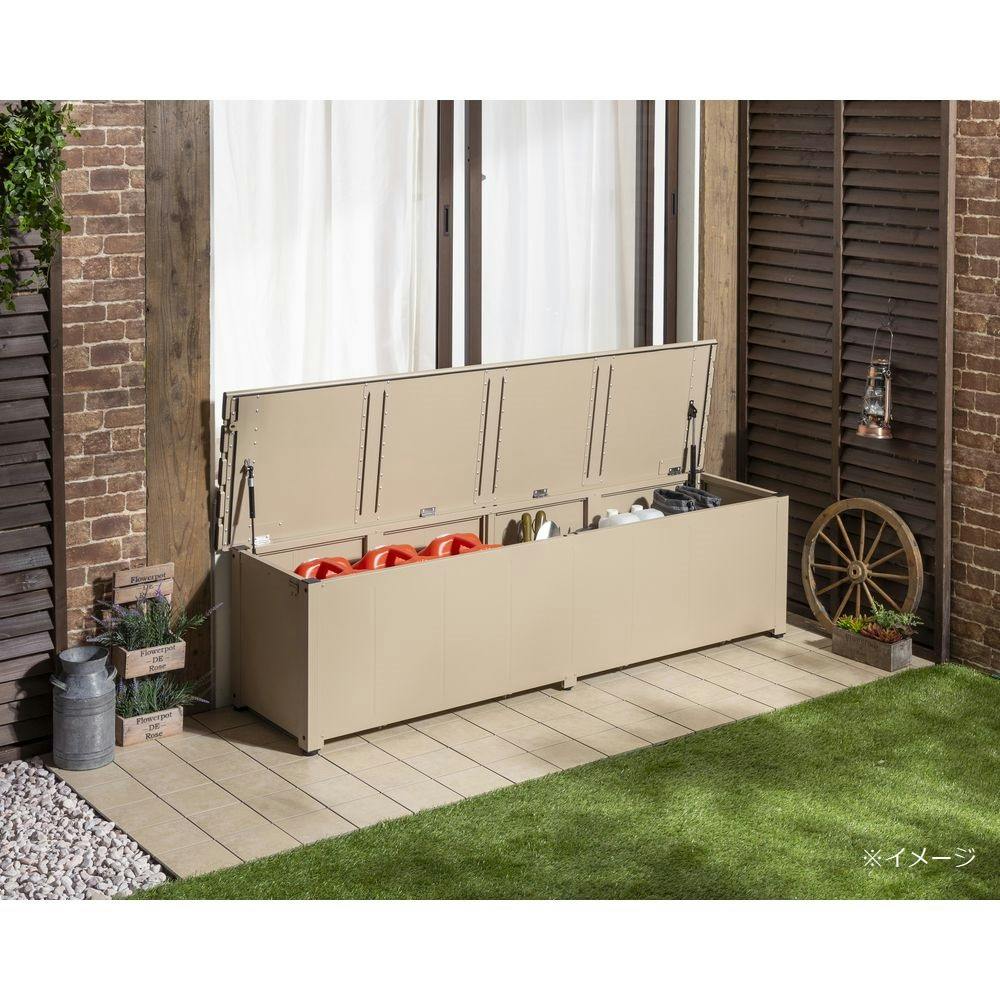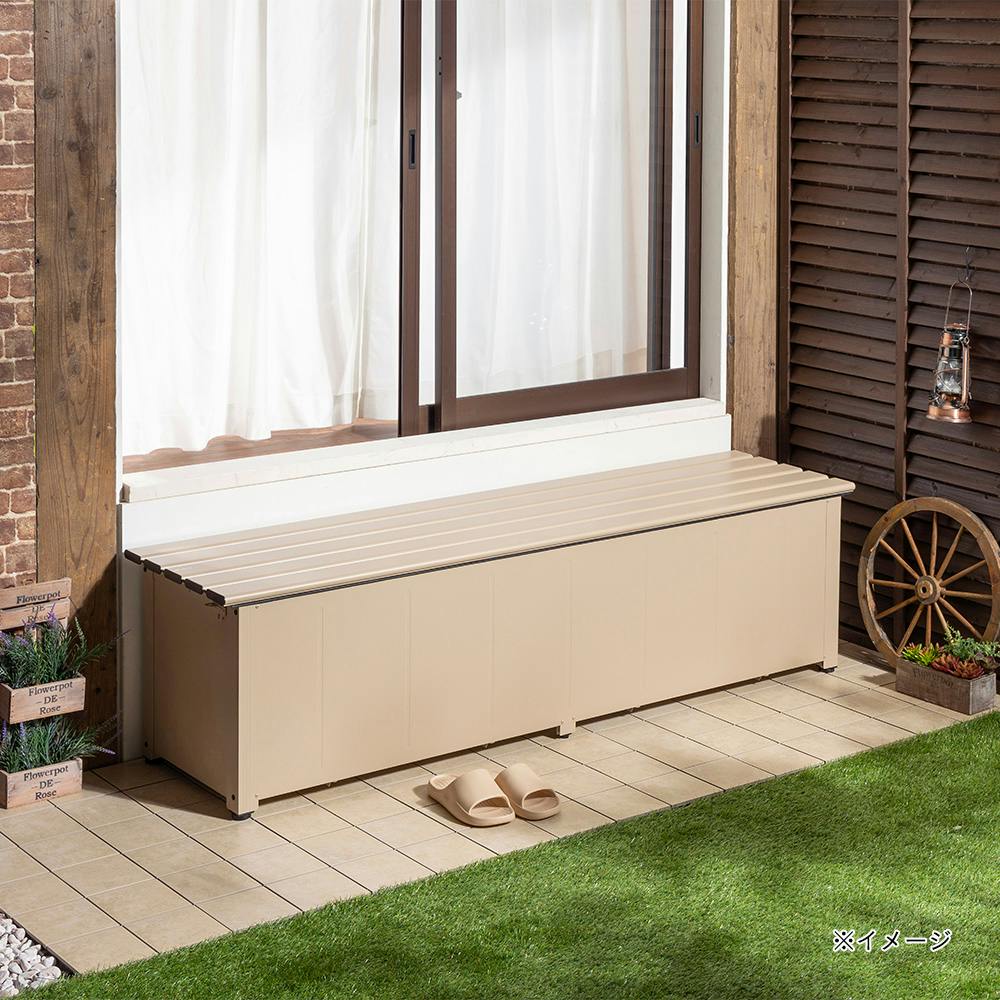 カインズ 静かに開閉できるアルミ収納ベンチ ベージュ 幅180cm 奥行45cm 高さ48cm 縁台 屋外収納