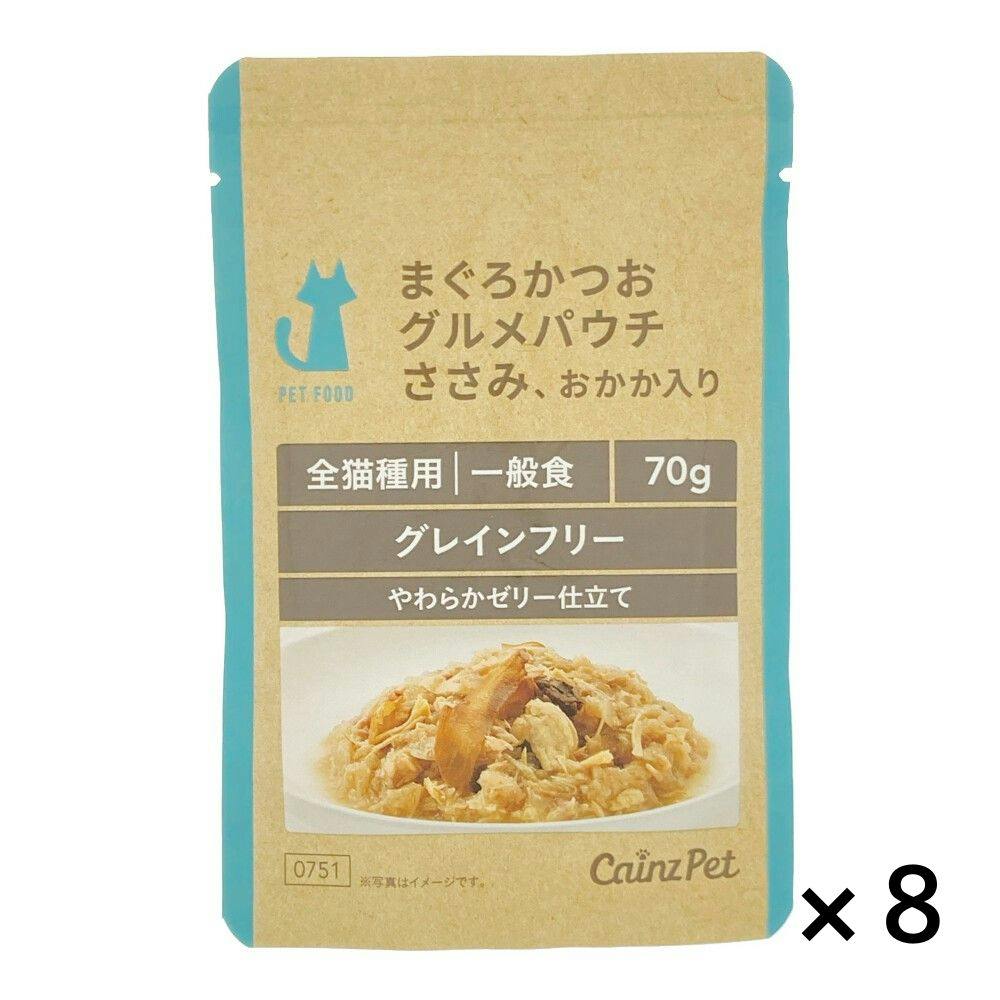 【ケース販売】まぐろかつお グルメパウチ ささみ・おかか入り ゼリー仕立て 70g×8個入