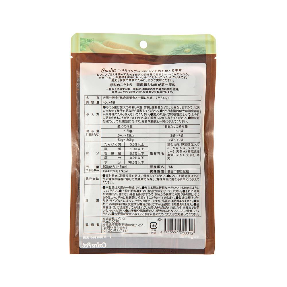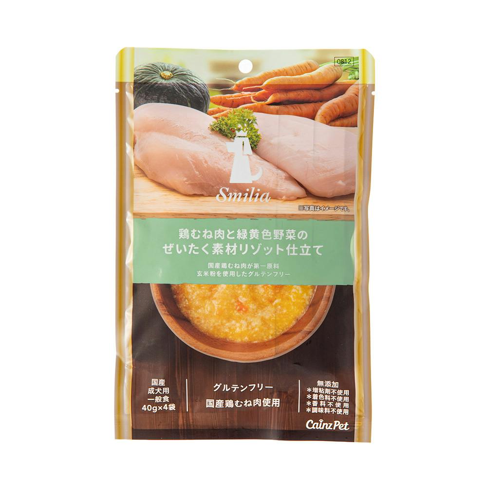 スマイリア 鶏むね肉と緑黄色野菜のぜいたく素材リゾット仕立て 40g×4袋 成犬用 無添加(増粘剤・着色料・香料・調味料不使用)