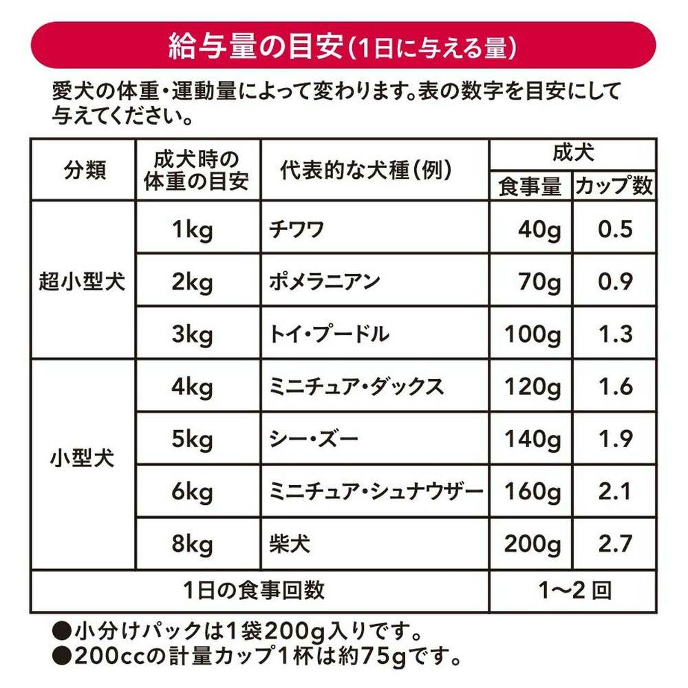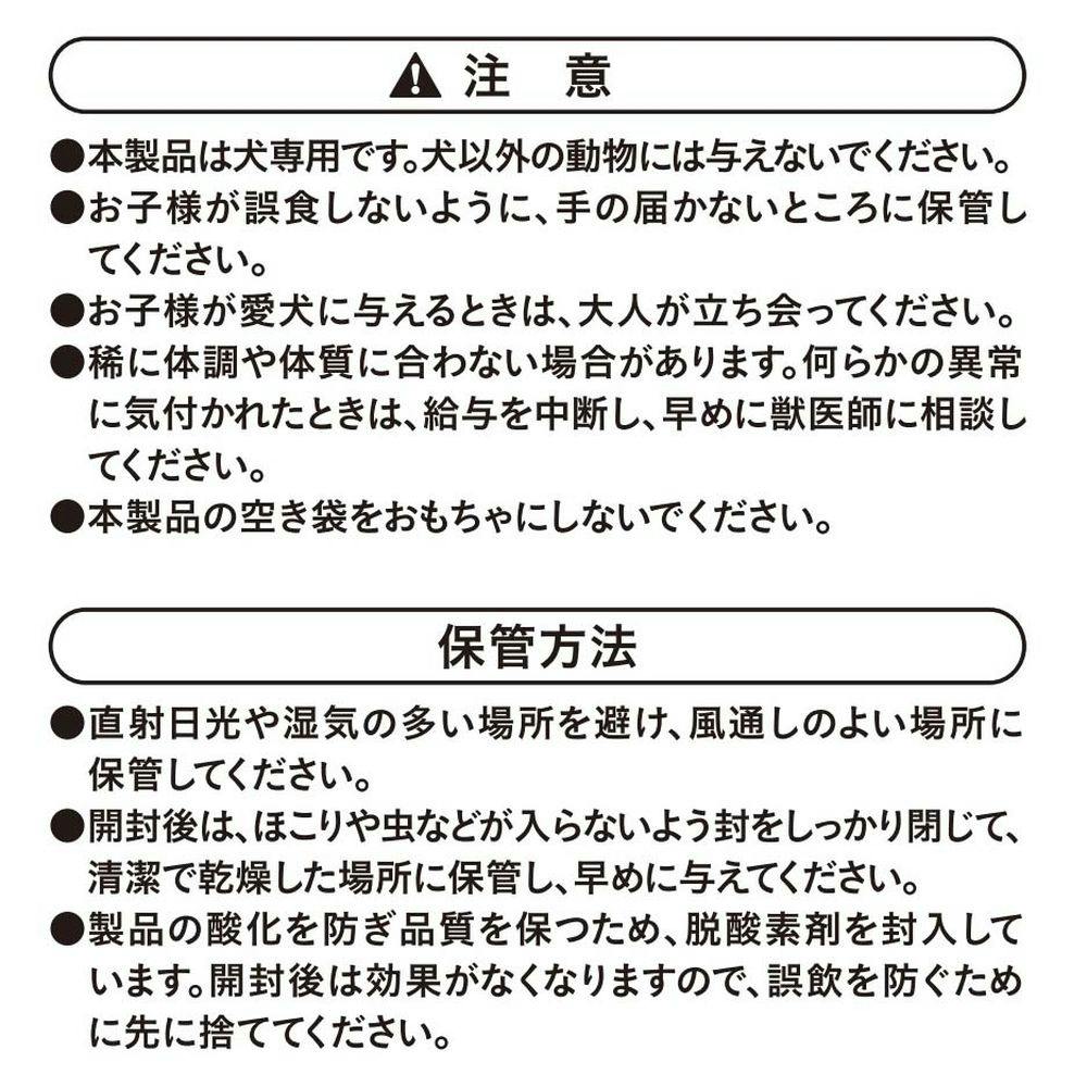 たんぱく質17.0%以上、脂質12.0%以上、粗繊維5.0%以下、灰分7.5%以下、水分24.0%以下、カルシウム0.8%以上、リン0.6%以上