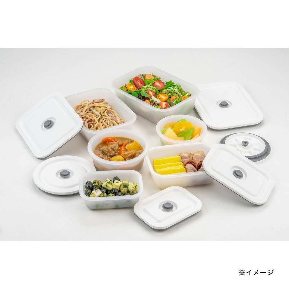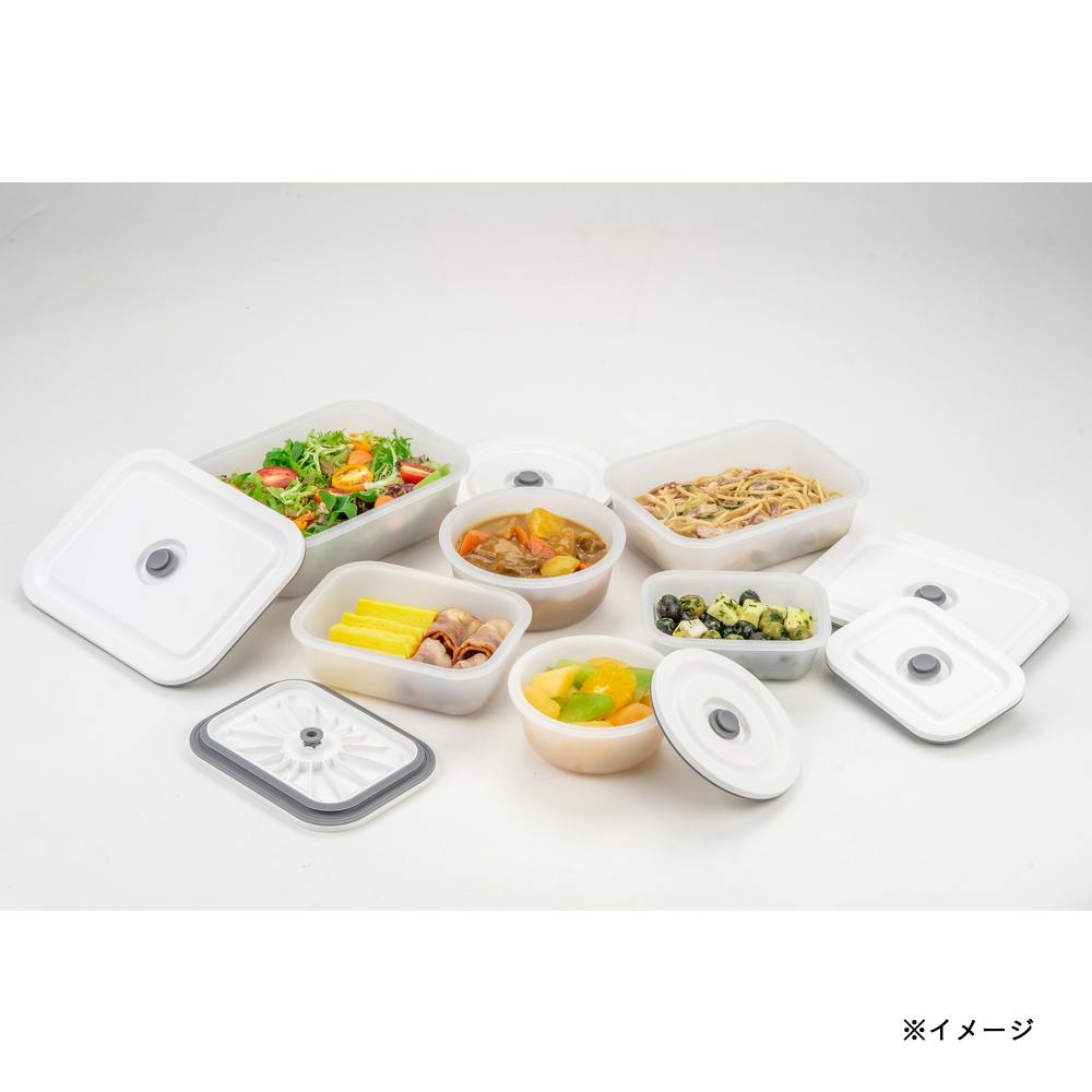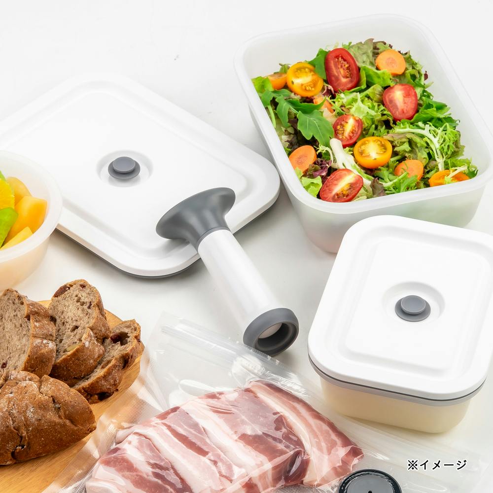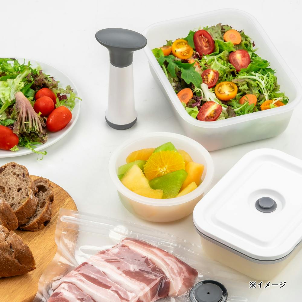 ●専用ポンプで真空保存でき、鮮度が落ちにくい※専用ポンプは別売です「食品圧縮袋・保存容器用手動ポンプ」 ●電子レンジOK※電子レンジを使用する際はフタを外してください ●食材・料理に合わせた保存方法でより長期の保存に