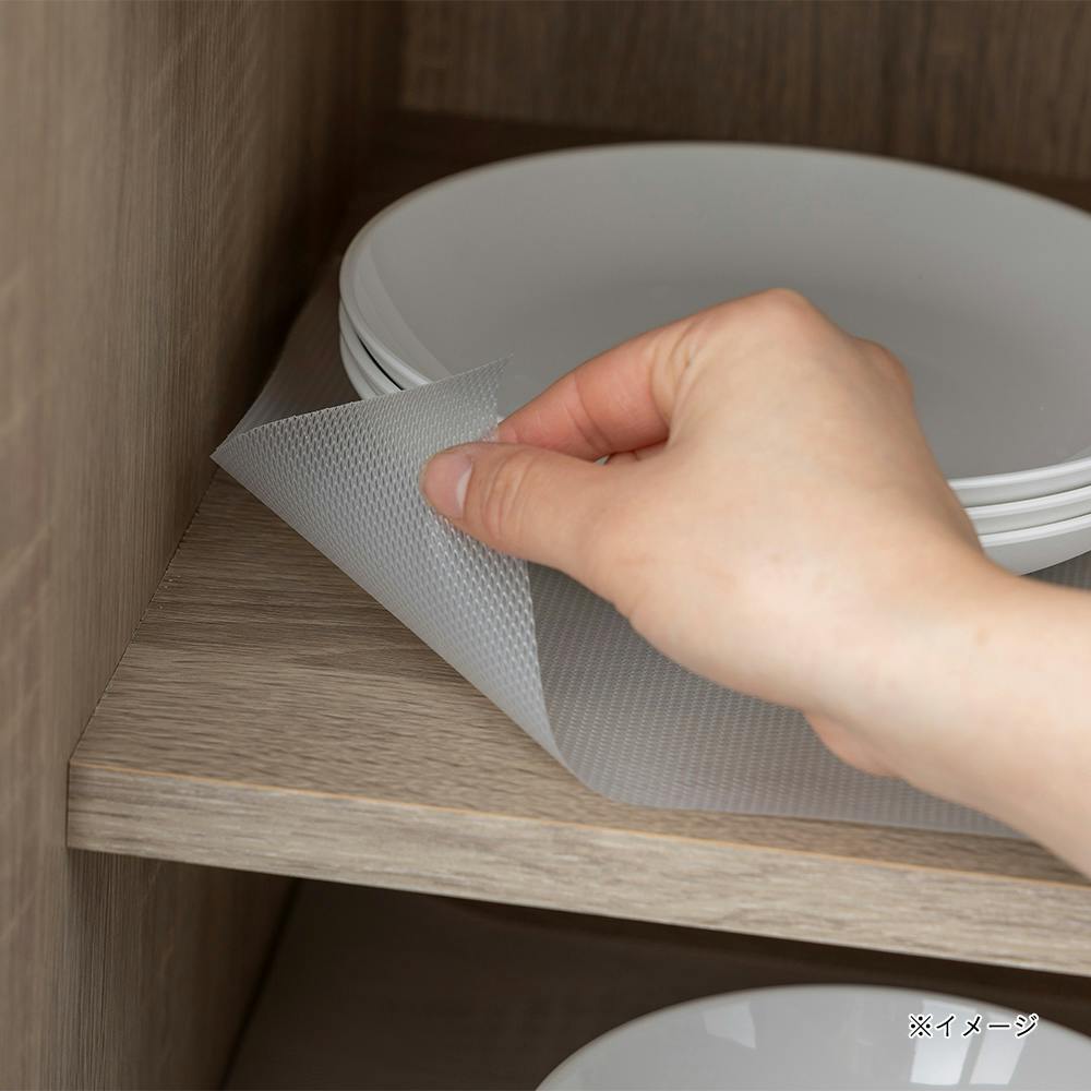 ●ズレにくいすべり止め加工※凹凸のある面を上にして使用してください※棚板の材質や表面状態により効果は異なります ●お手入れしやすい抗菌加工※全ての菌に効果があるわけではありません ●食器棚やシステムキッチンの引き出し、吊るし棚、飾り棚など幅広く利用できる