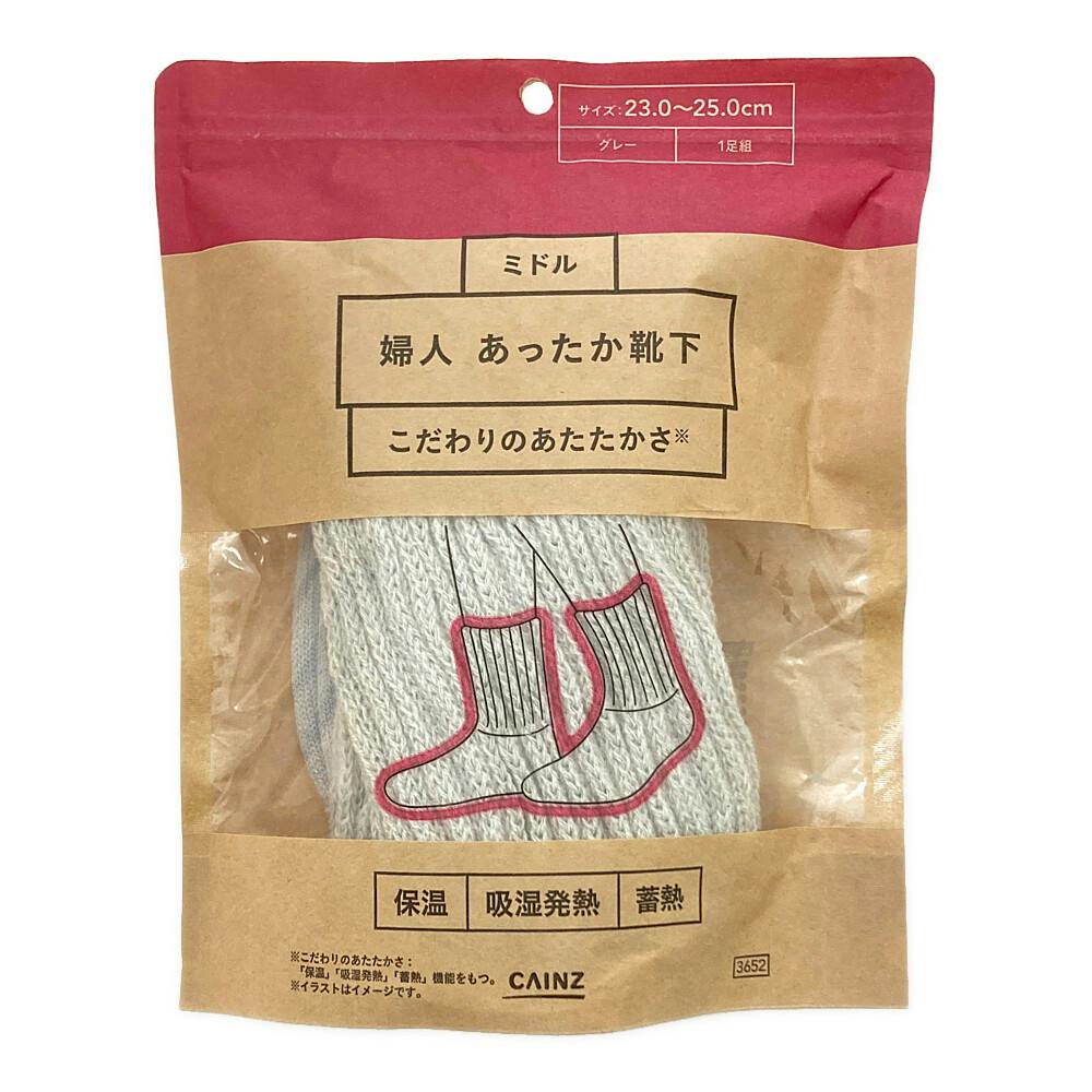 カインズ あったか靴下 ミドル丈 グレー 23.0cm-25.0cm