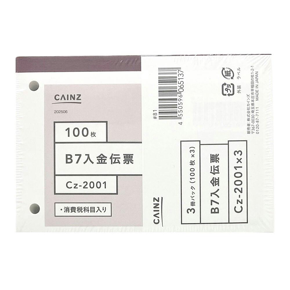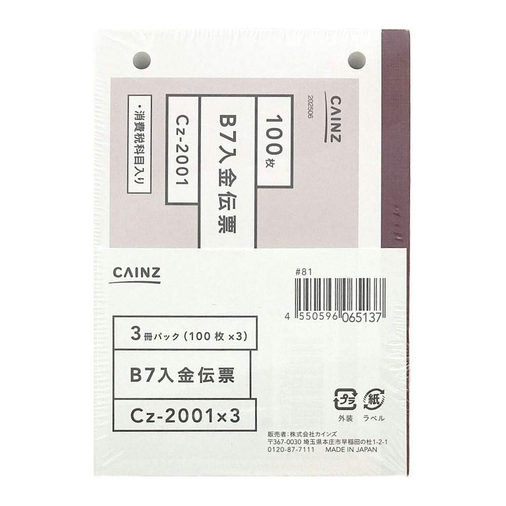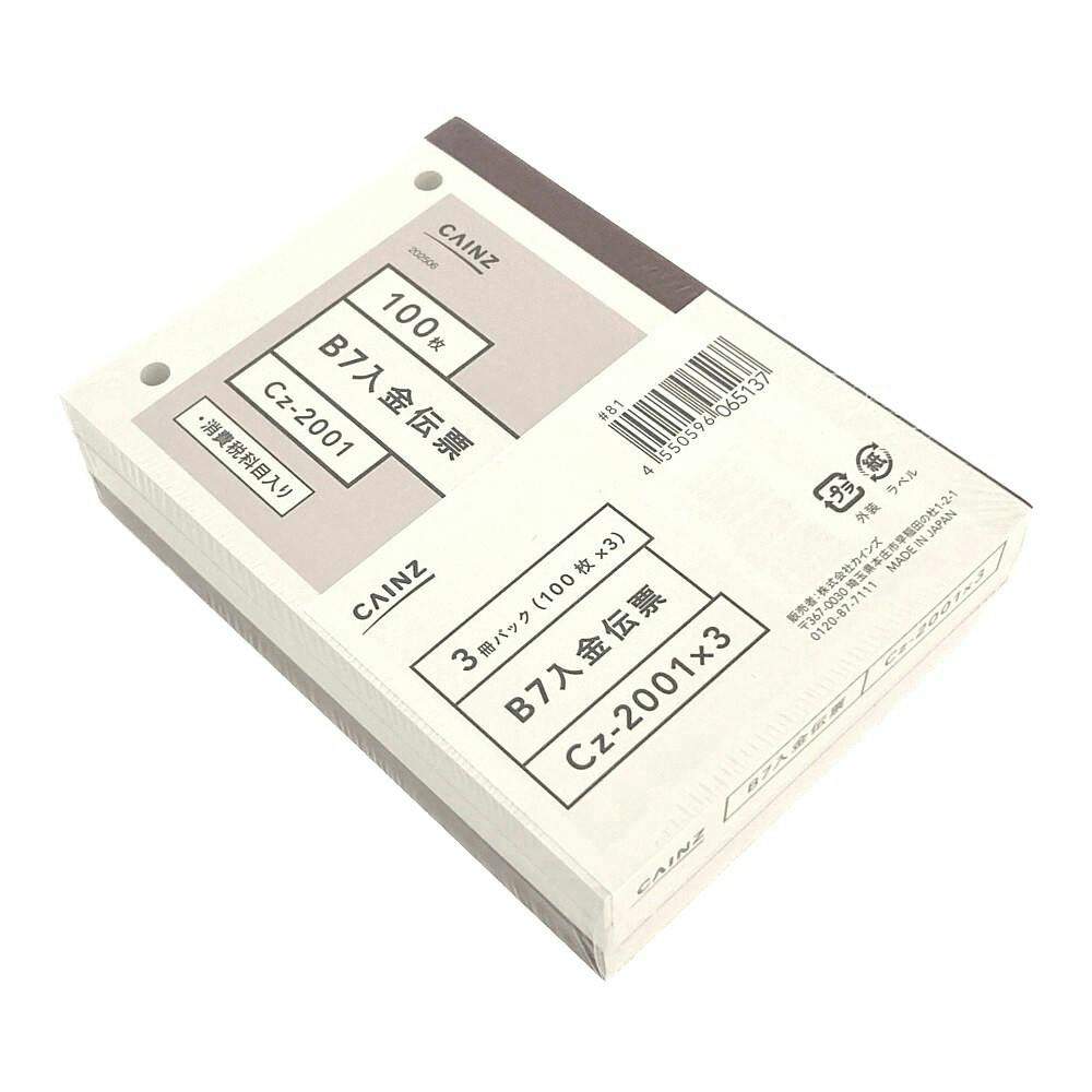 入金伝票 B7 3冊パック Cz-2001X3
