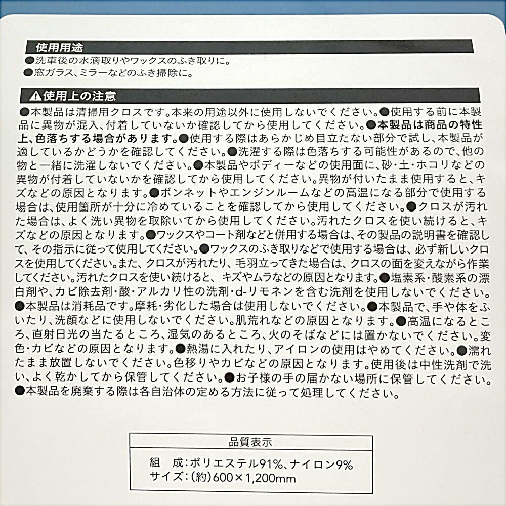 ●洗車後の水滴取りやワックスの拭き取りに。●窓ガラス、ミラーなどの拭き掃除に。