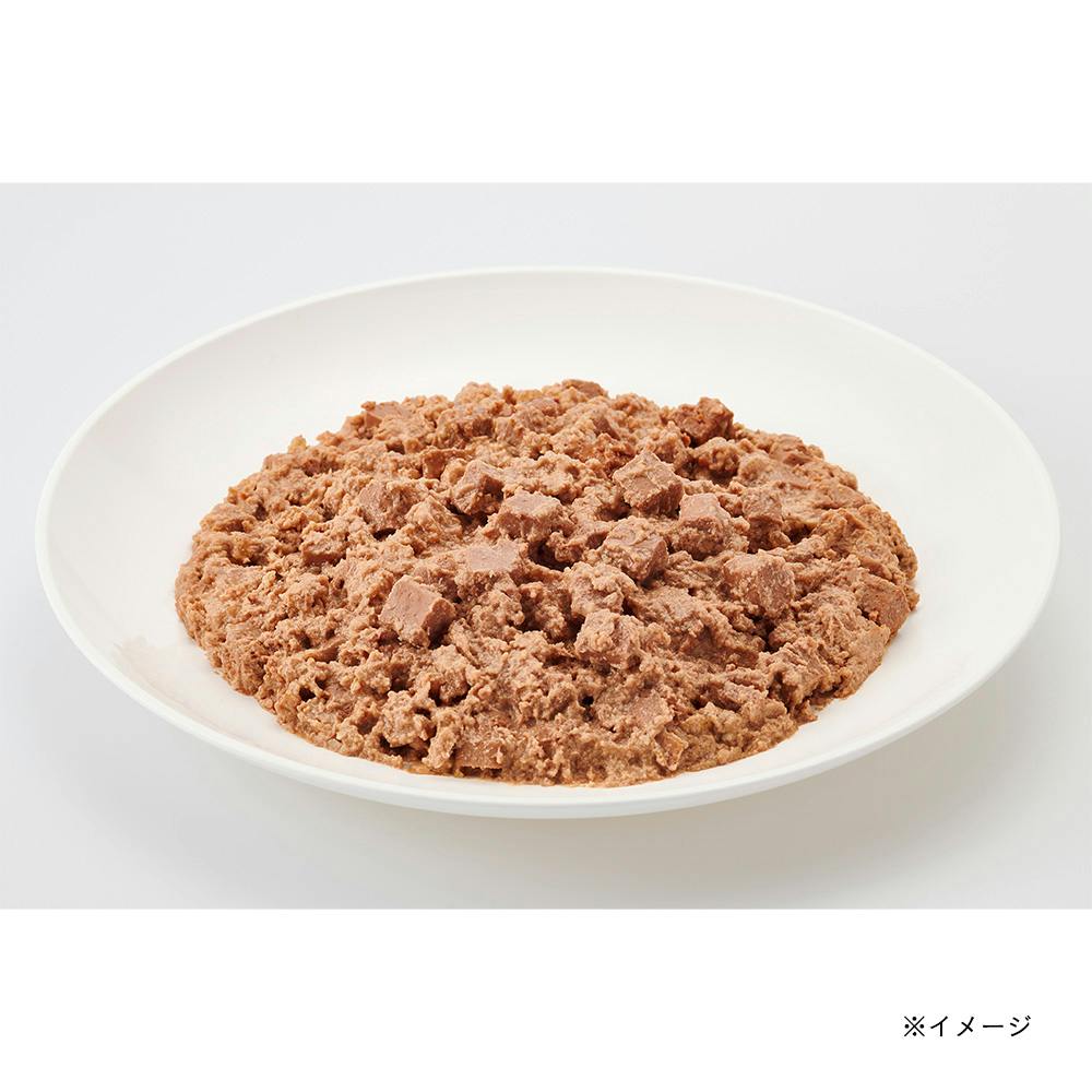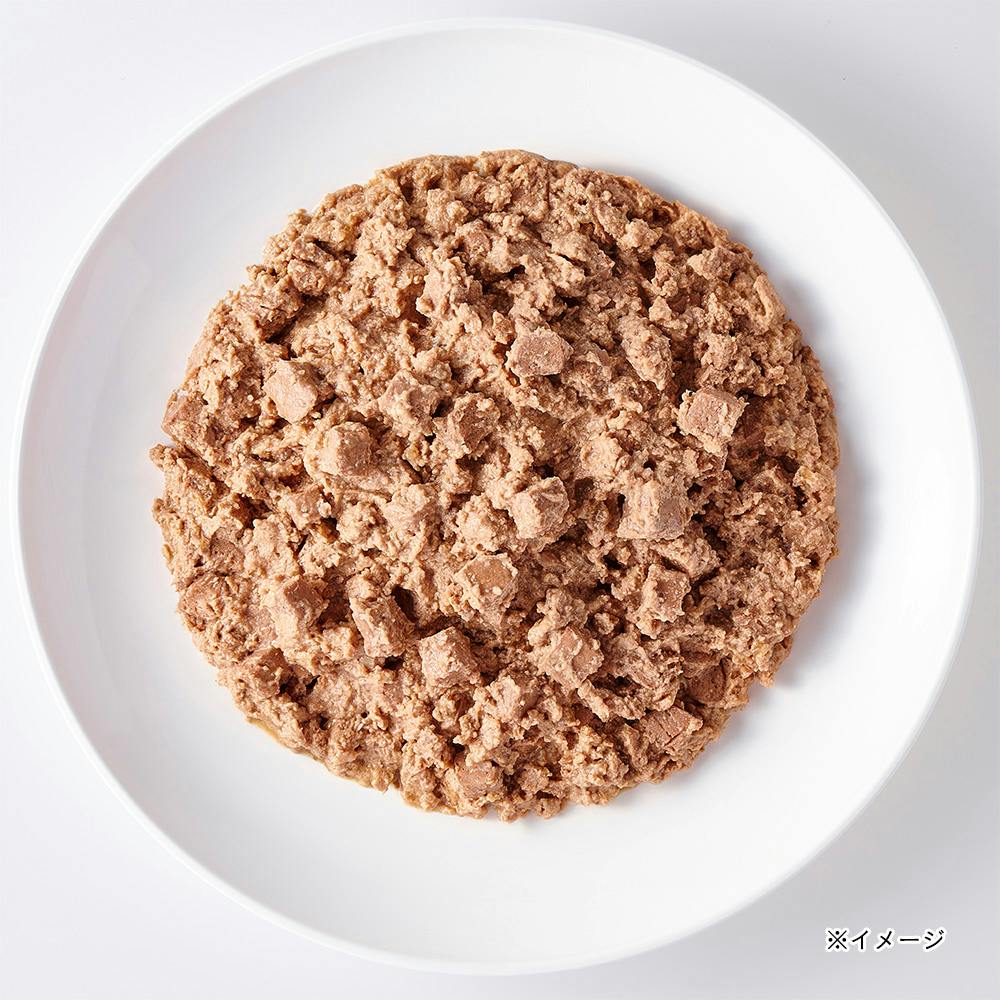 肉類(鶏肉、チキンエキス)、小麦粉、増粘多糖類、粉末セルロース、ミネラル類(Ca、P、K、Na、Cl、Fe、Mg、Zn、Se、Cu、Mn、I)、ビタミン類(コリン、E、B1、B12、A、パントテン酸、ナイアシン、B2、D3、葉酸、B6)、着色料(二酸化チタン、酸化鉄)