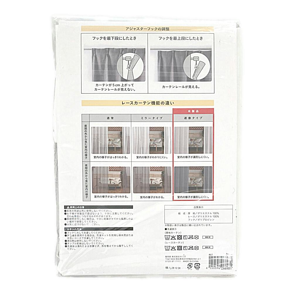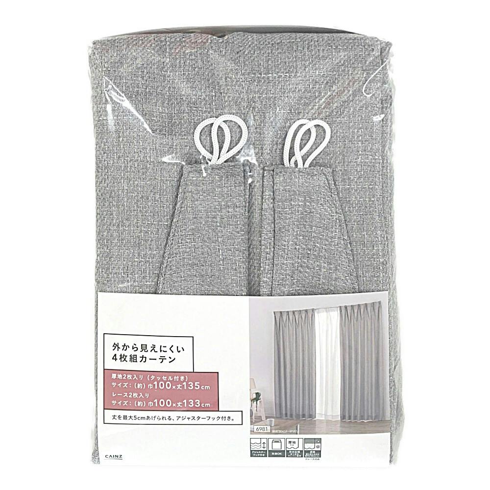 外から見えにくい4枚組カーテン グレー 100×135cm