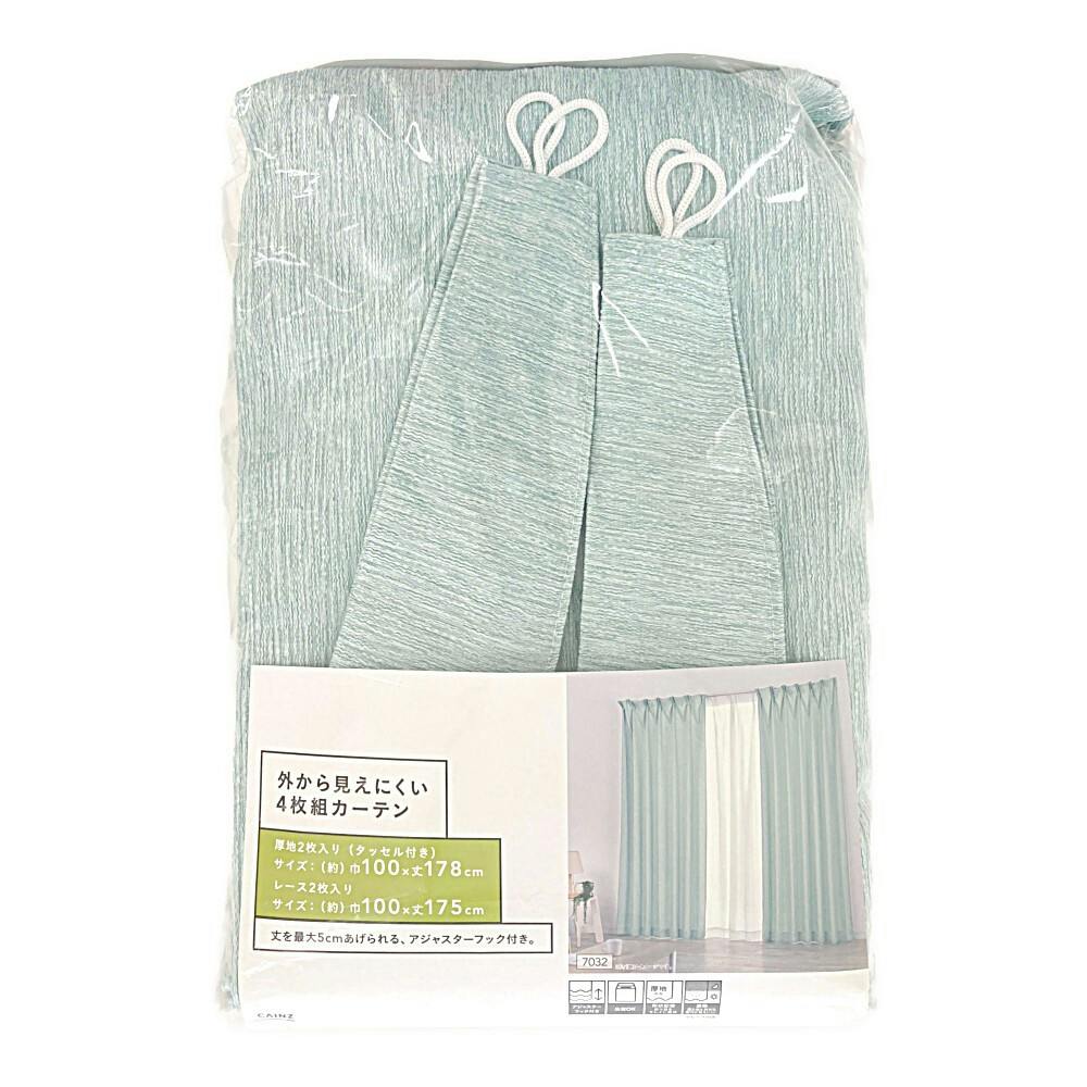 外から見えにくい4枚組カーテン ブルー 100×178cm