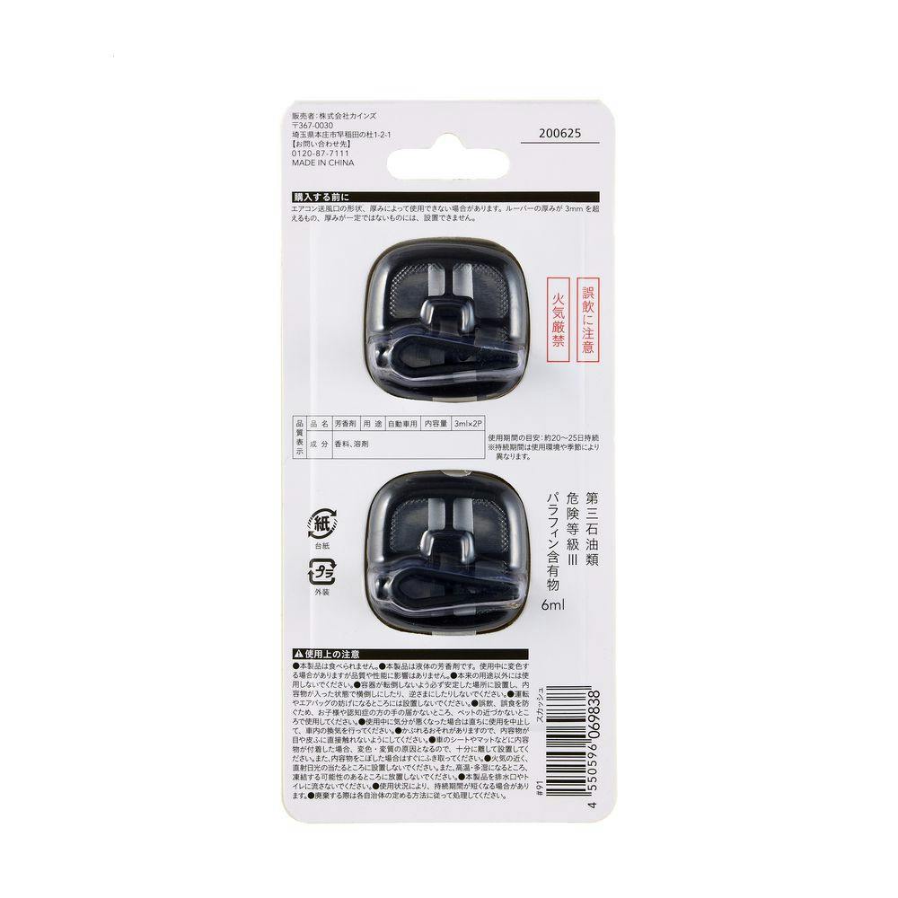 ●本製品は液体の芳香剤です。使用中に変色する場合がありますが品質や性能に影響はありまん。●運転やエアバッグの妨げになるところには設置しないでください。●使用状況により、持続期間が短くなる場合があります。