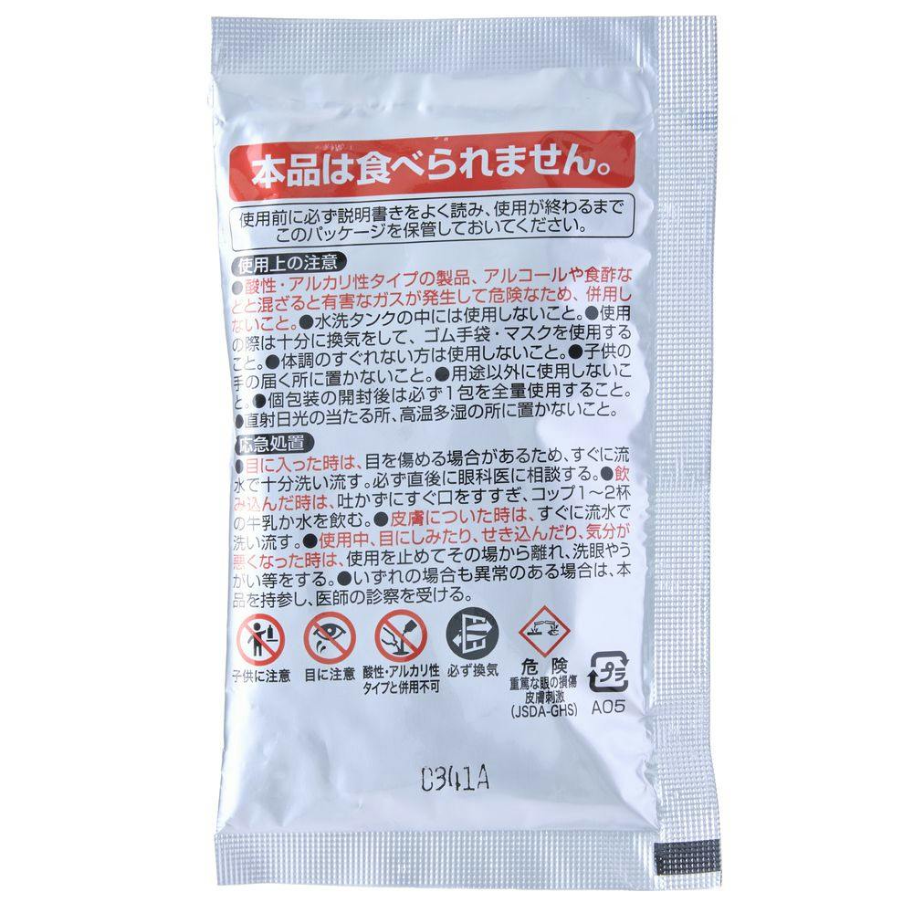 ●酸性・アルカリ性タイプの製品、アルコールや食酢などと混ざると有害なガスが発生して危険なため、併用しない。●顔を近づけて使用しない。粉が舞い上がり、、目・鼻・口などに入らないように注意する。●泡があふれるおそれがあるため、1度に2包以上使用しない。