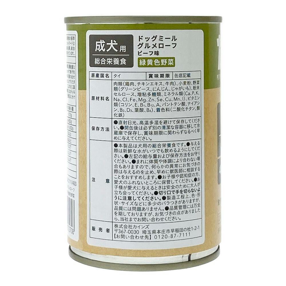 【ケース販売】ドッグミール缶 グルメローフ ビーフ味 緑黄色野菜 成犬用 400g×12個入