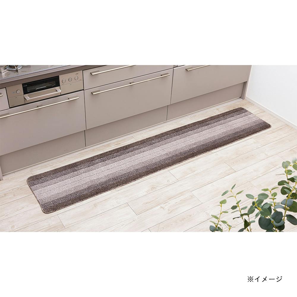 洗えるキッチンマット ボーダーブラウン 45×240cm 厚み8mm 洗濯機可