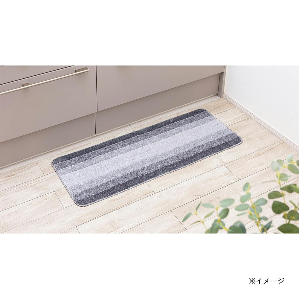 • 洗えるキッチンマット ボーダーグレー 45×120cm 厚み8mm 洗濯機可