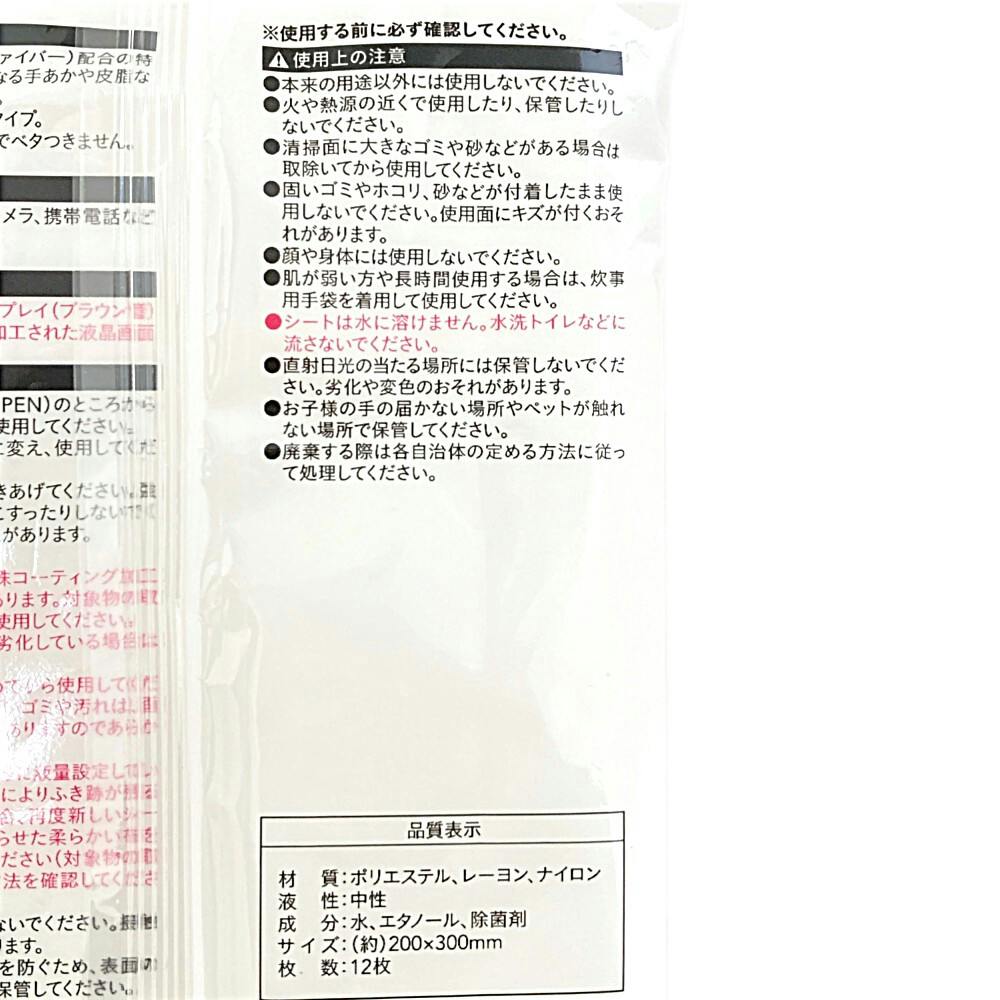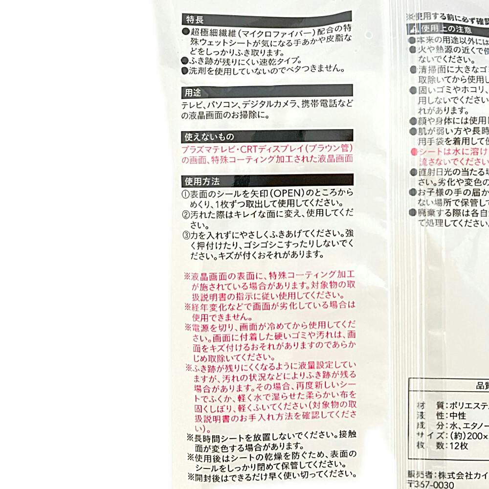 拭き跡が残りづらい液晶画面用掃除シート 12枚入