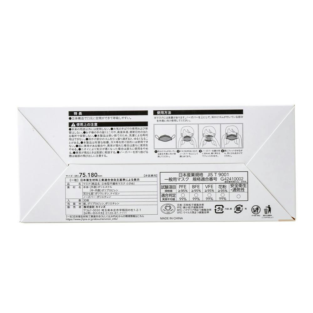 立体型不織布マスク 小さめ 30枚 ホワイト