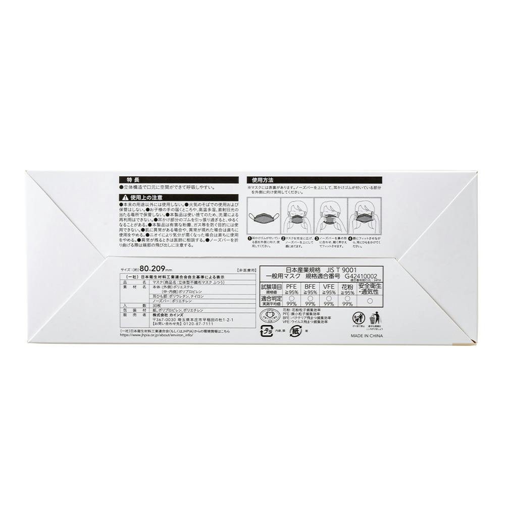 高密度フィルター採用。立体構造で口元に空間ができて呼吸しやすい。やわらか素材でやさしい肌ざわり。