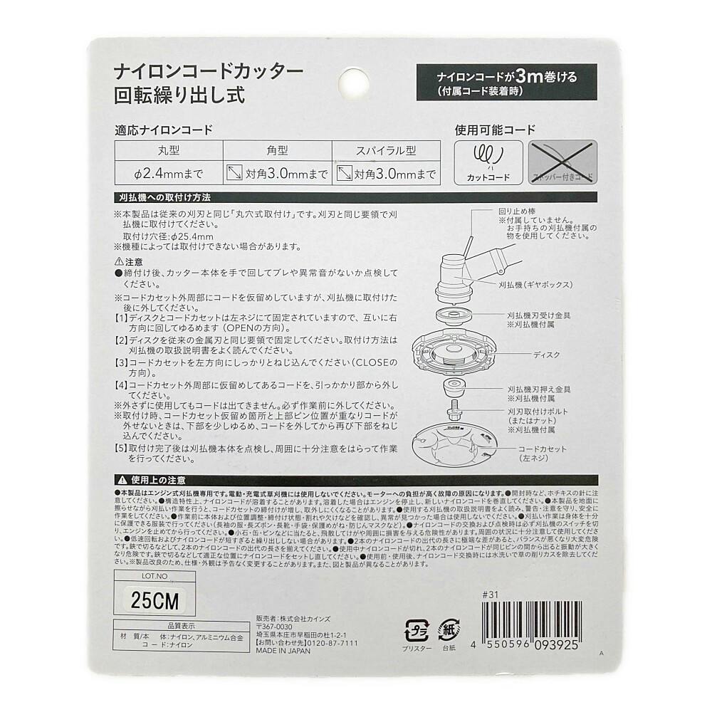 ●使用する刈払機・ナイロンコードカッターの取扱説明書をよく読み、警告・注意を守り安全に作業してください。●草刈り作業は身体を十分に保護できる服装で行ってください。