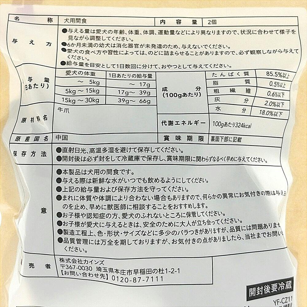本品は犬用の間食です。与える際は新鮮な水がいつでも飲めるようにしてください。品質管理には万全を期しておりますが、お気づきの点がありましたら、当社までお問い合わせください。
