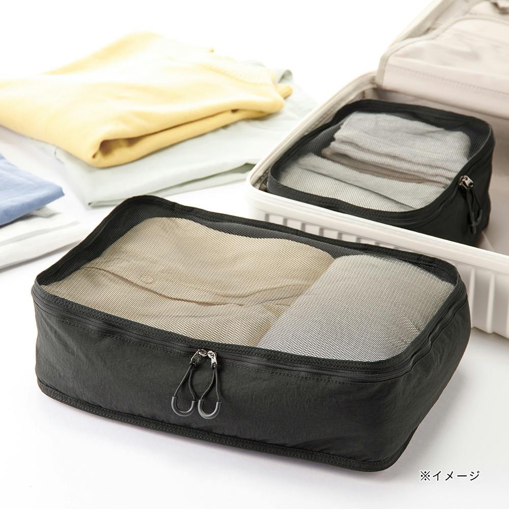 ●キャリーケース内の整理整頓に。●片面メッシュで整理しやすい。見せたくなものは隠してしまえる。