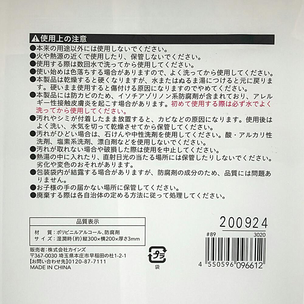 カビ止め液に浸してありますので最初に水ですすいで落としてからご使用ください。