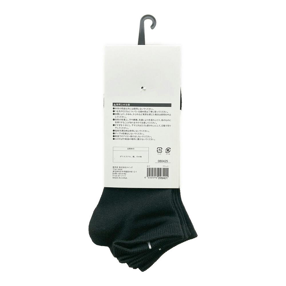 履き口ゆったり スニーカー丈 先丸 ブラック 25.0-27.0cm 5足組