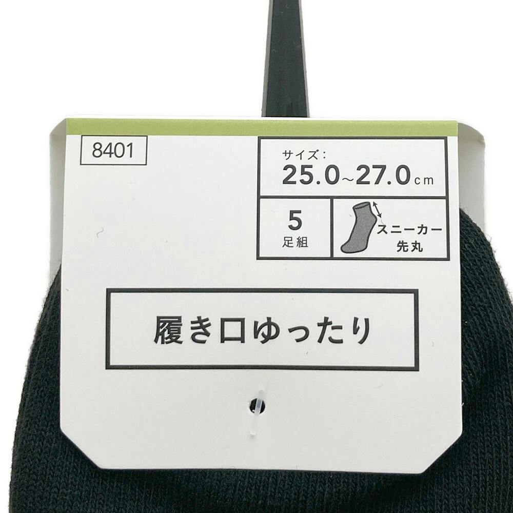 • 履き口ゆったり スニーカー丈 先丸 ブラック 25.0-27.0cm 5足組