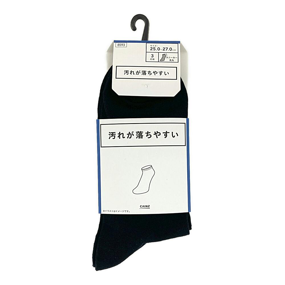 • 汚れが落ちやすい スニーカー丈 ブラック 3足組