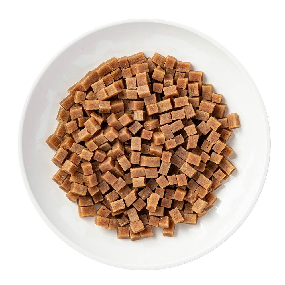 6か月未満の幼犬は消化器官が未発達のため、与えないでください。愛犬の食べ方や習性によっては、のどに詰まらせることがありますので、必ず観察しながらお与えください。給与量を目安として1日2~3回に分けてお与えください。