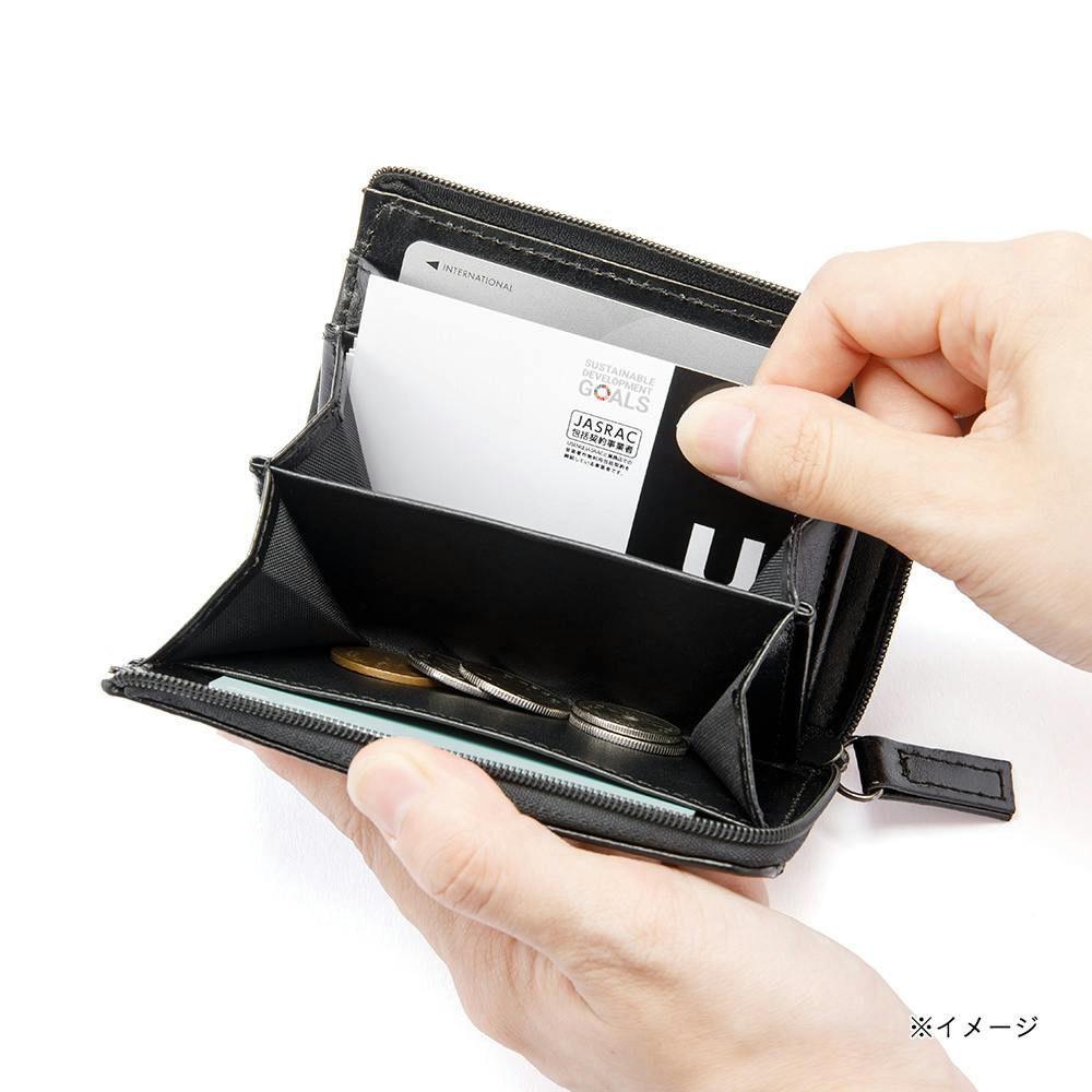牛床革を使用したL字ファスナー小銭入れとしても使えるカード・名刺入れ