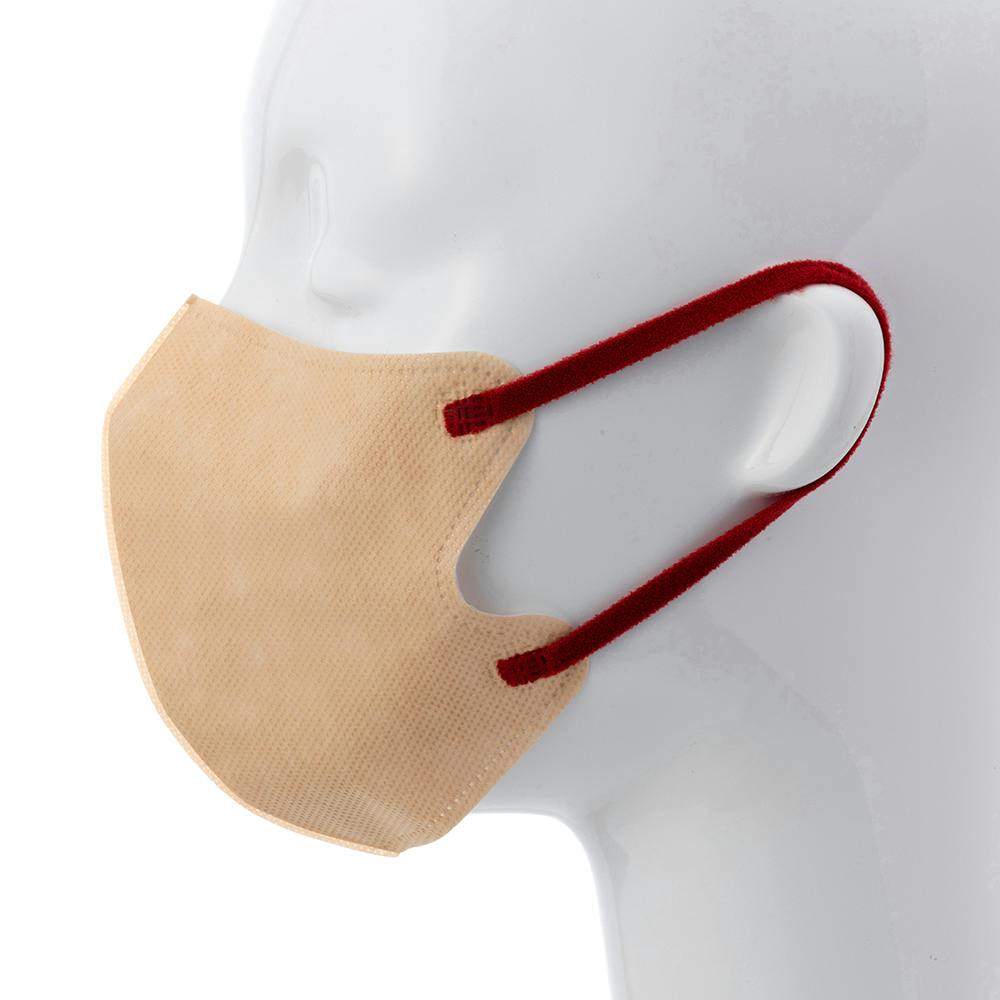 ①耳かけゴムが付いている面を外側に向けて使用してください②マスクを完全に広げ、顔にあてます③顔にフィットさせながら、耳にひもをかけてください