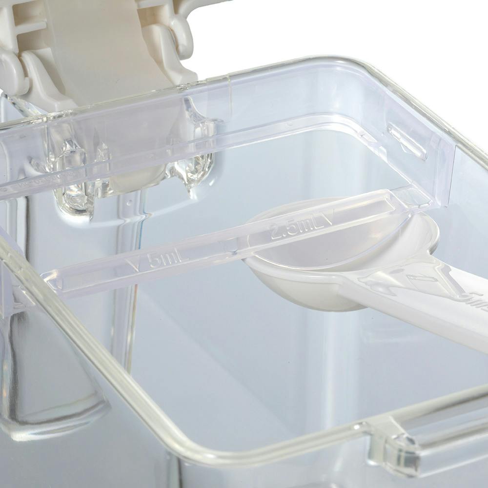 ●本体・フタ/ポリスチレン ●すり切り板/ポリプロピレン ●スプーン/ポリプロピレン ●プッシュバー/ABS樹脂 ●パッキン/シリコーンゴム