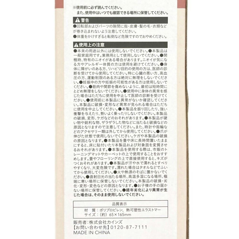 ●回転部およびパーツの隙間に指・皮膚・髪の毛・衣類などが巻き込まれないよう注意してください。●体重をかけすぎると転倒など危険ですのでおやめください。