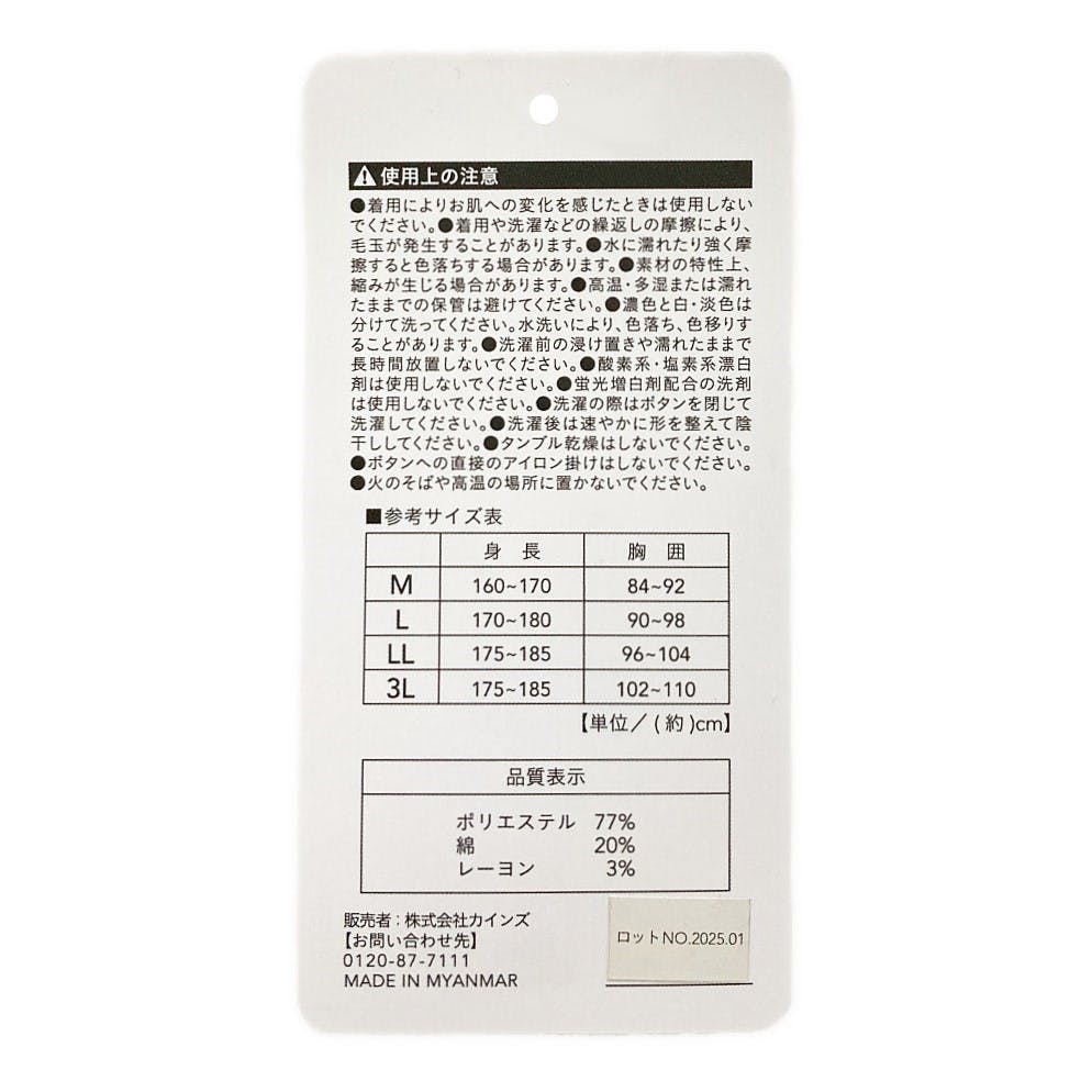 ポリエステル 77% 綿 20% レーヨン 3%