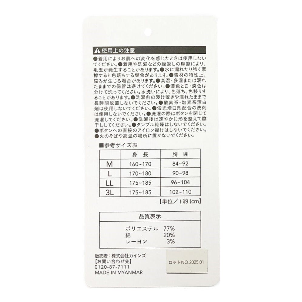 ポリエステル 77% 綿 20% レーヨン 3%