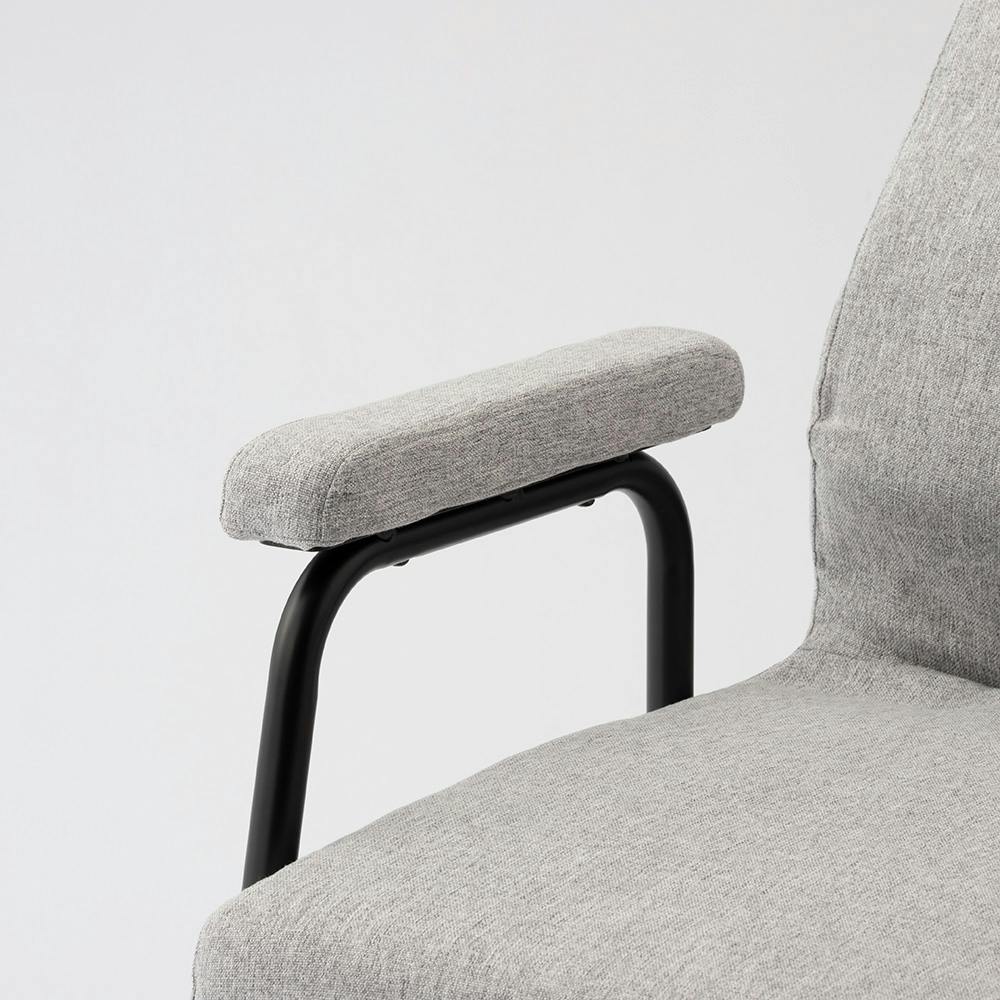 平均身長に沿って設計された座面高と肘置きの高さで、立ち上がりやすく、座りやすい。肩まで支えてくれる高めの背もたれでゆったり座れる。座面はポケットコイル入りで弾力性がある。背もたれは7段階の角度調整ができる。