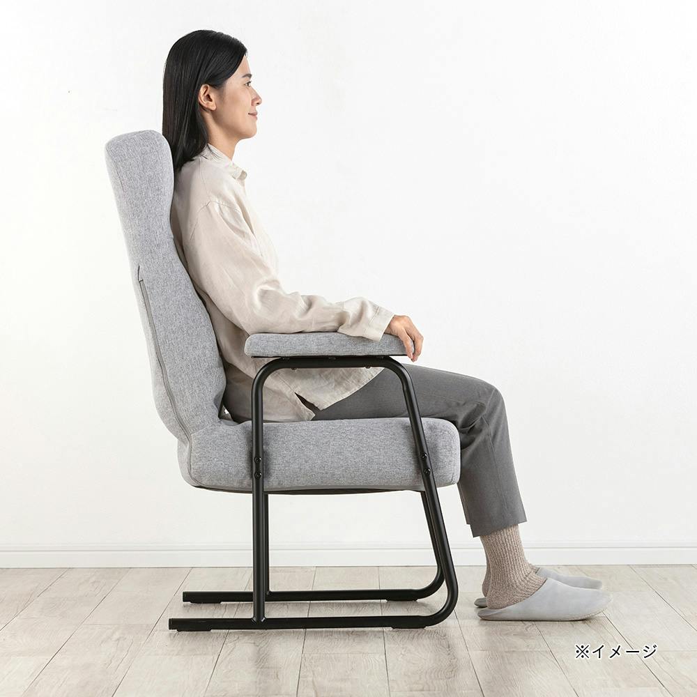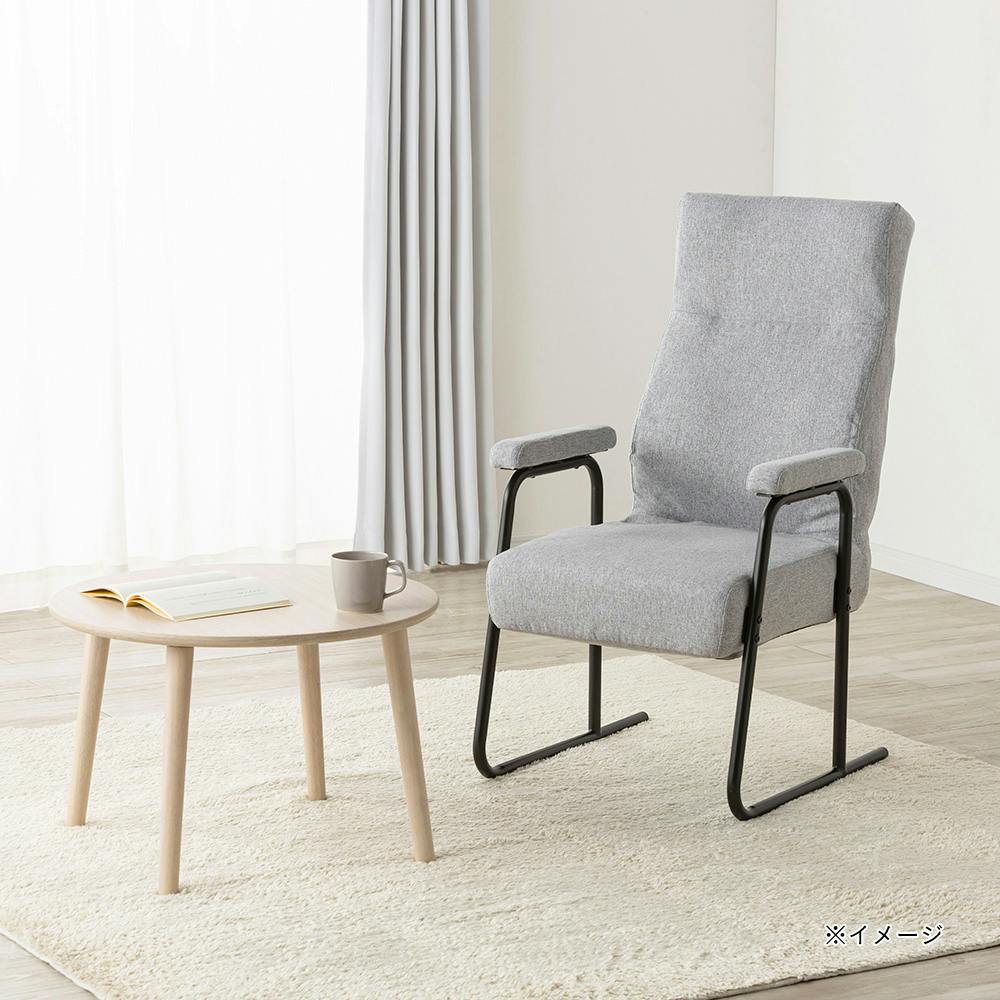 背もたれ高めの立ち座りがしやすい肘付き高座椅子 グレー 幅54.5cm 奥行63~93.5cm 高さ88.5~99cm