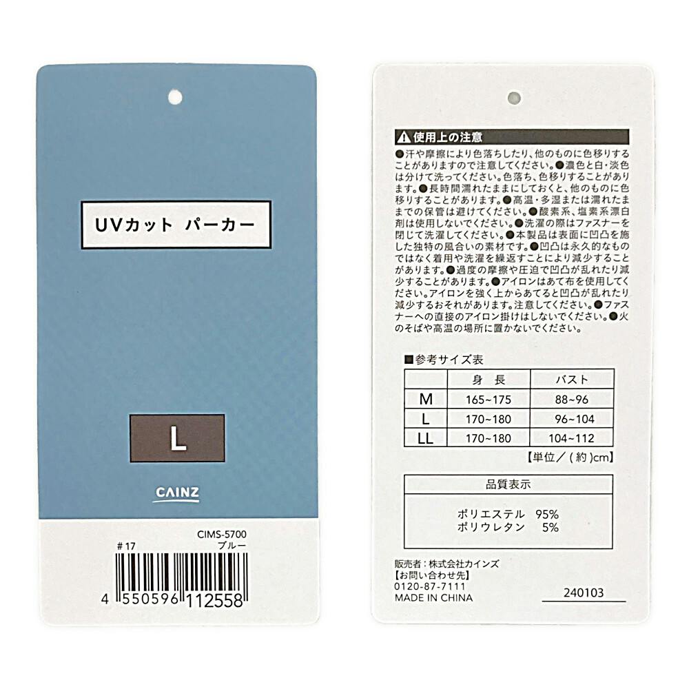 UVカット パーカー L ブルー