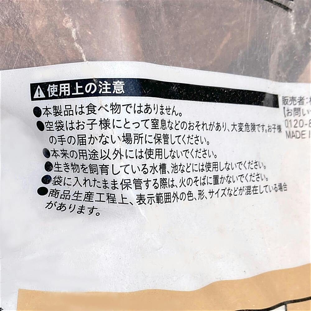 ●石の形状、大きさ、色合い、重さは一つ一つ異なります。自然のものですので、サイズや形はご指定できません。●本製品は食べ物ではありません。●空袋はお子様にとって窒息などのおそれがあり、大変危険です。お子様の手の届かない場所に保管してください。