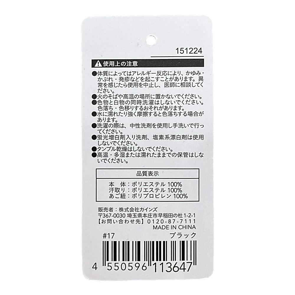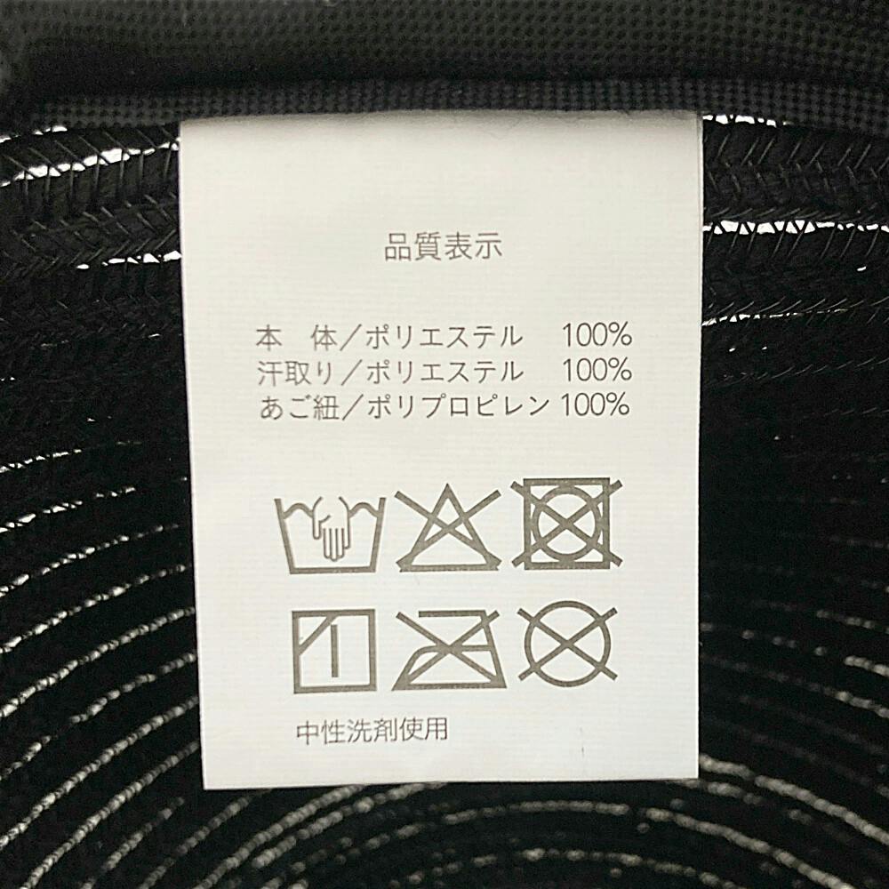 品質表示/(本体)ポリエステル:100%、(汗取り)ポリエステル:100%、(あご紐)ポリプロピレン:100%