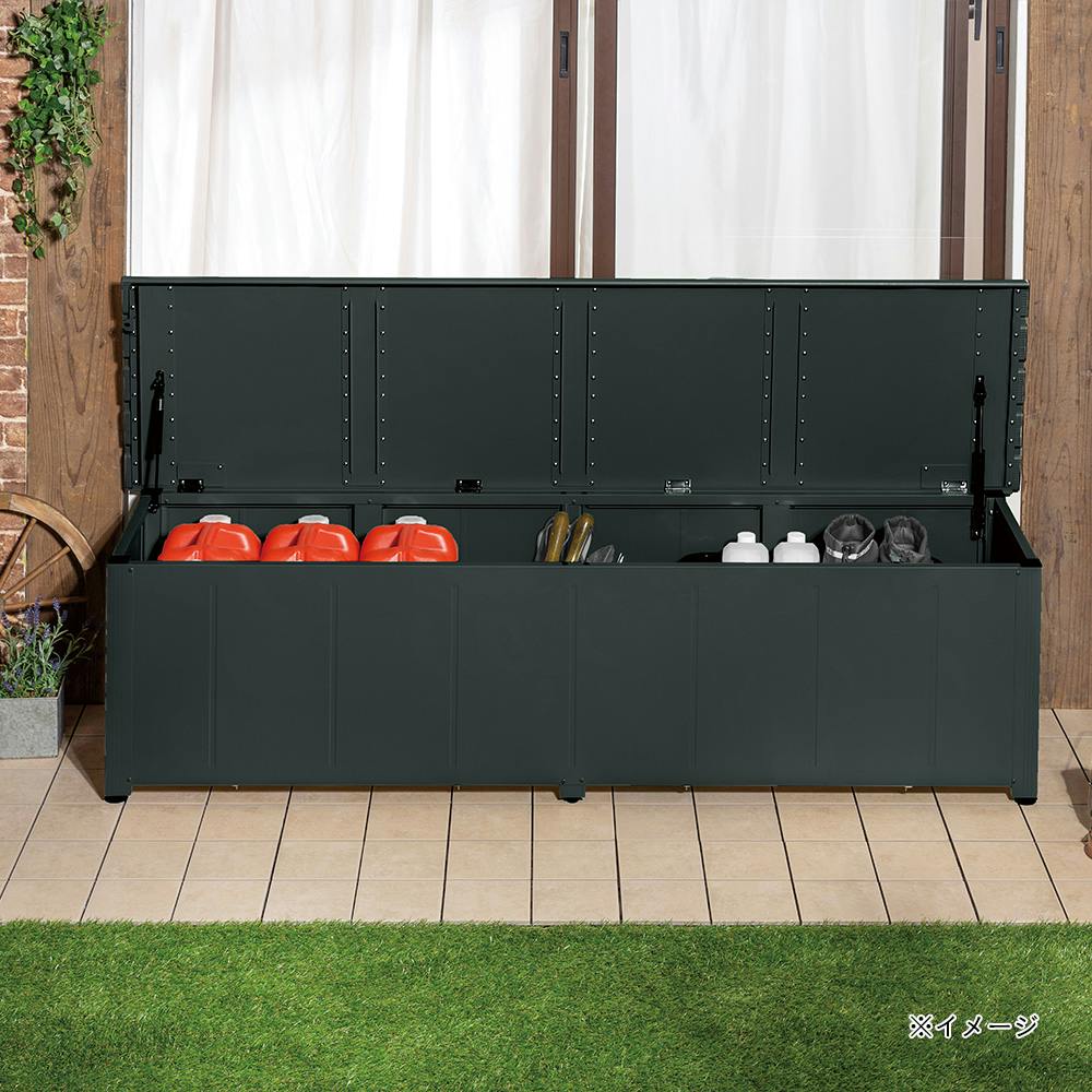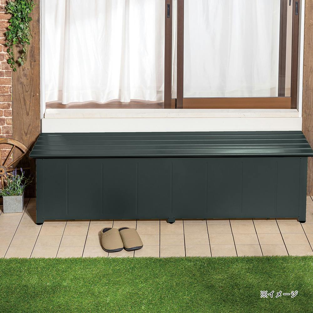 カインズ 静かに開閉できるアルミ収納ベンチ ダークグリーン 180cm