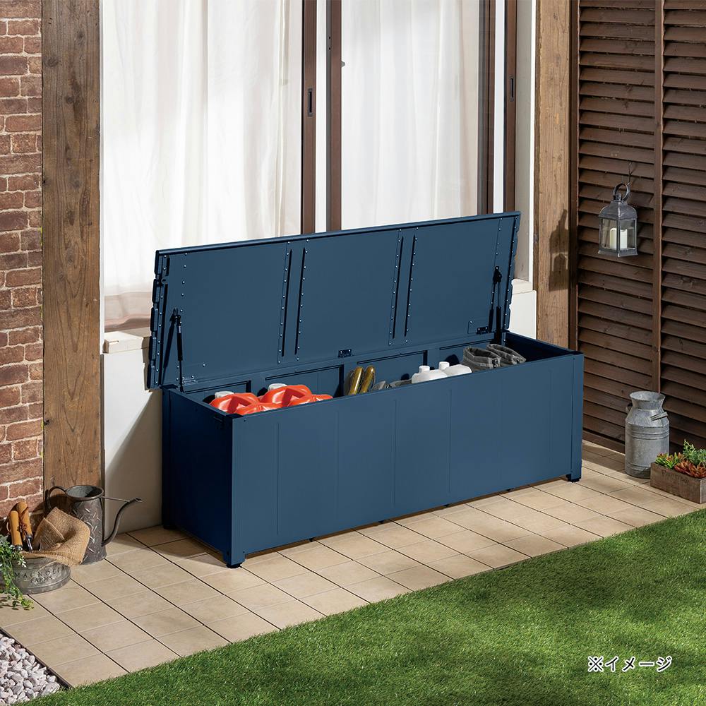 カインズ 静かに開閉できるアルミ収納ベンチ ネイビー 150cm