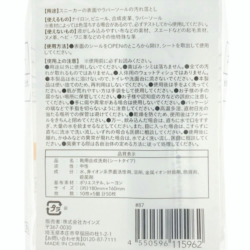 スニーカークリーナーシート 10枚×5パック