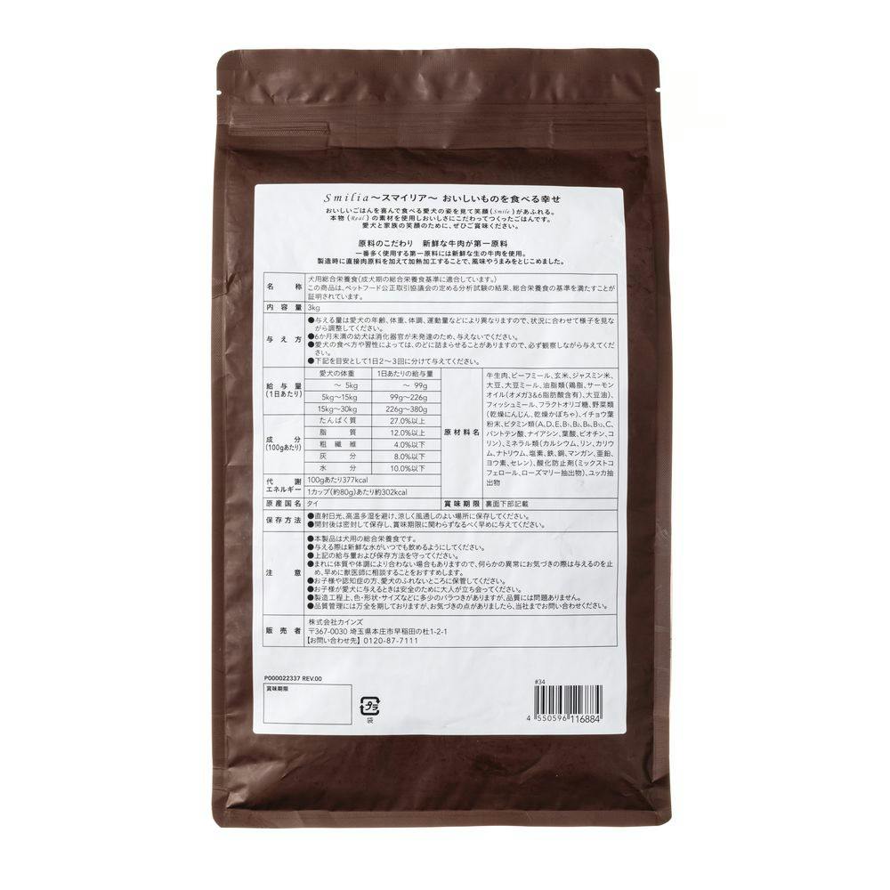 スマイリア 牛肉と玄米のぜいたく素材ごはん 3kg 成犬用